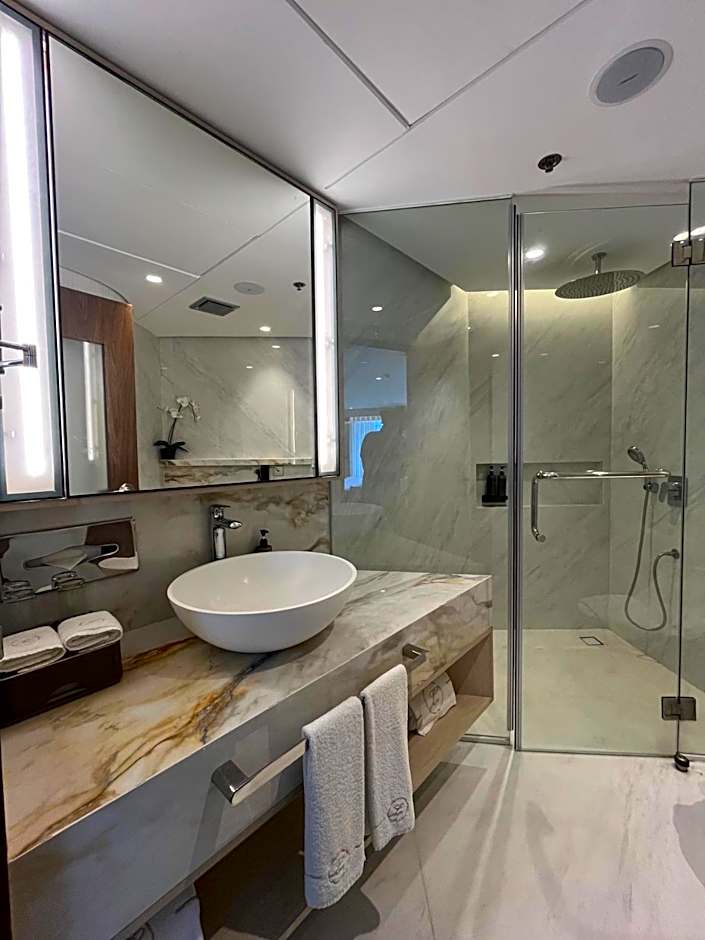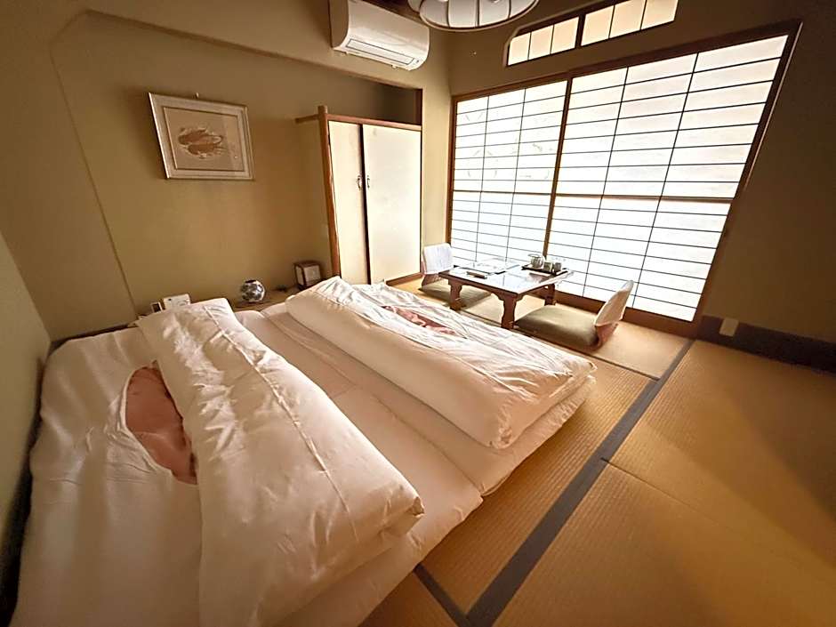 Offering a historic charm, each room comes with tatami (woven-straw) flooring, a low table and futon bedding. Guests can unwind in the room with a yukata robe on, while watching satellite channels on a flat-screen TV. Room does not feature river views.